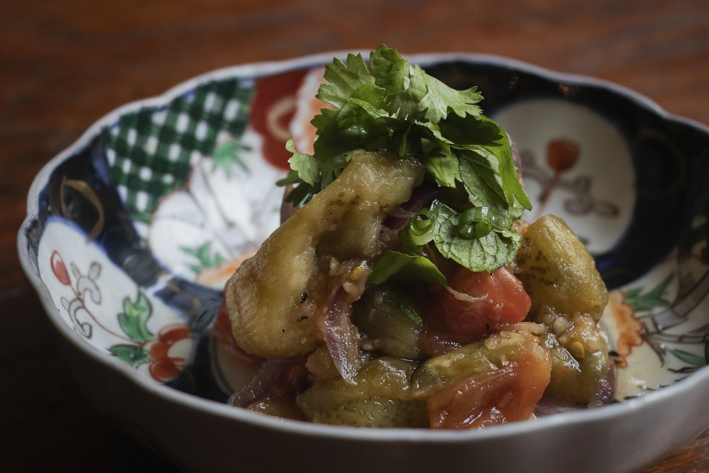 焼き茄子とトマトの発酵海老醤和え ¥700