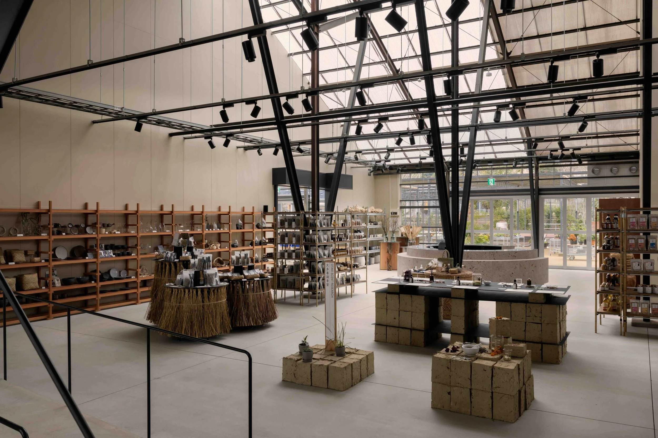 併設のショップでは、滞在中に触れた植物の魅力を日常へと持ち帰るためのプロダクトを展開。植物そのものに加え、焼き菓子やブレンドスパイス、フレッシュハーブ、ジャムなどの加工品、苑内で実際に使われている家具や植物苑とゆかりのあるアートピースなどが並ぶ。