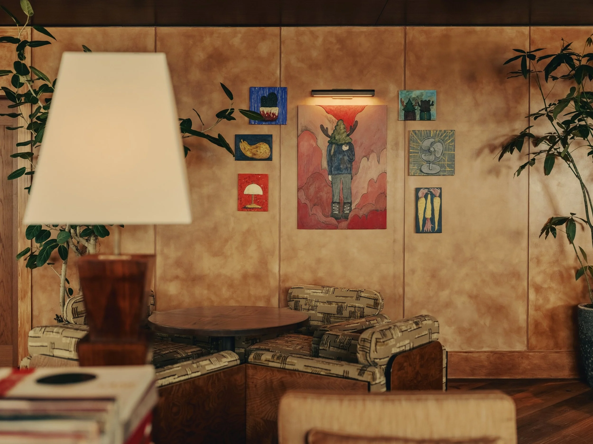 壁に飾られたアートは、日本にルーツを持つ、あるいは日本で活動・研鑽を積んだ40名以上のアーティストの作品を揃え、国内外で活動するアーティストの多様な表現が交差し、日本の現代アートの広がりを映し出す。