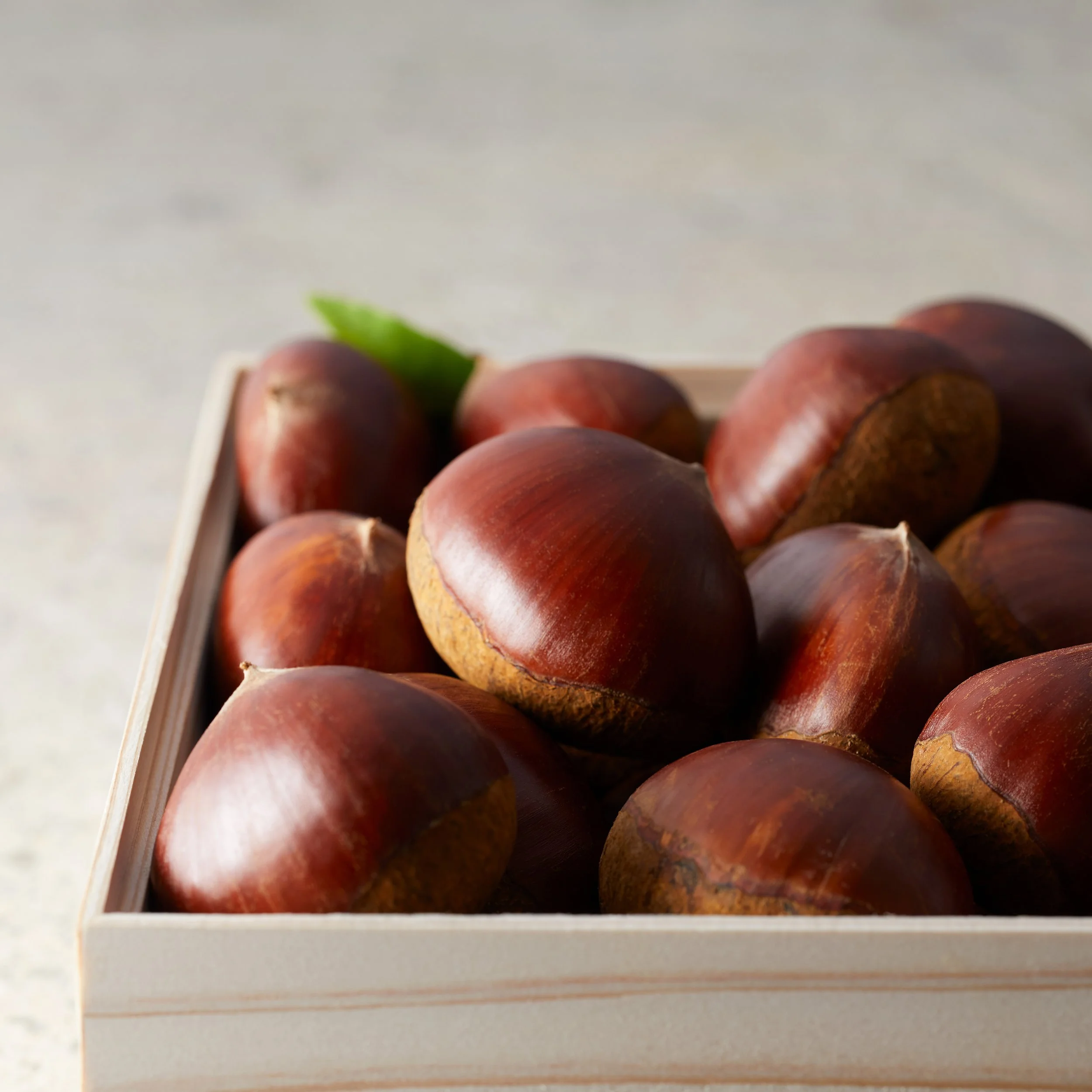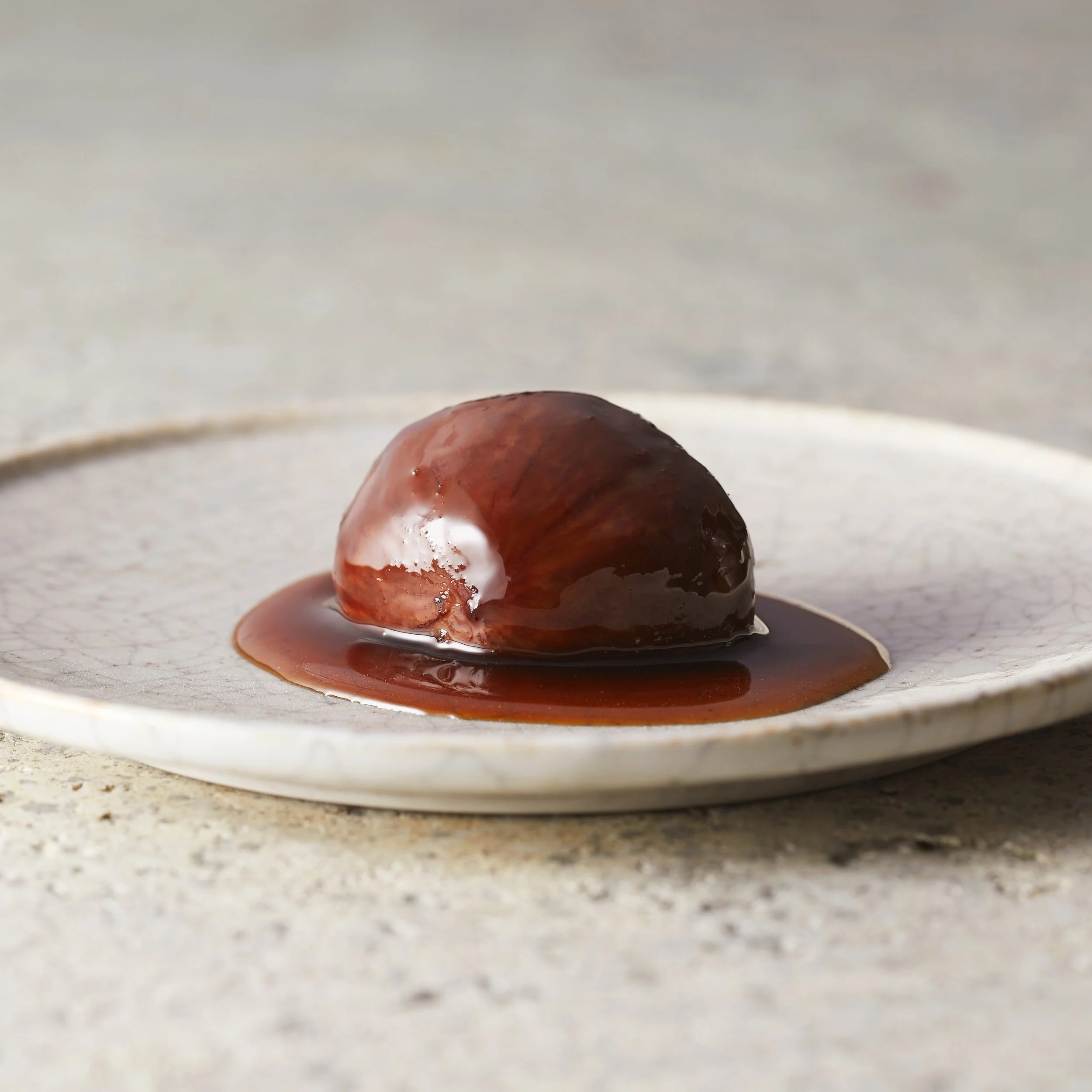 ブランデーと醤油を隠し味に加えた渋皮煮は、甘さを抑えつつ和栗本来の芳醇な香りを際立たせ、奥深い余韻を残す。秋の深まりとともに味わいたい、和栗とチーズの優雅なハーモニー。