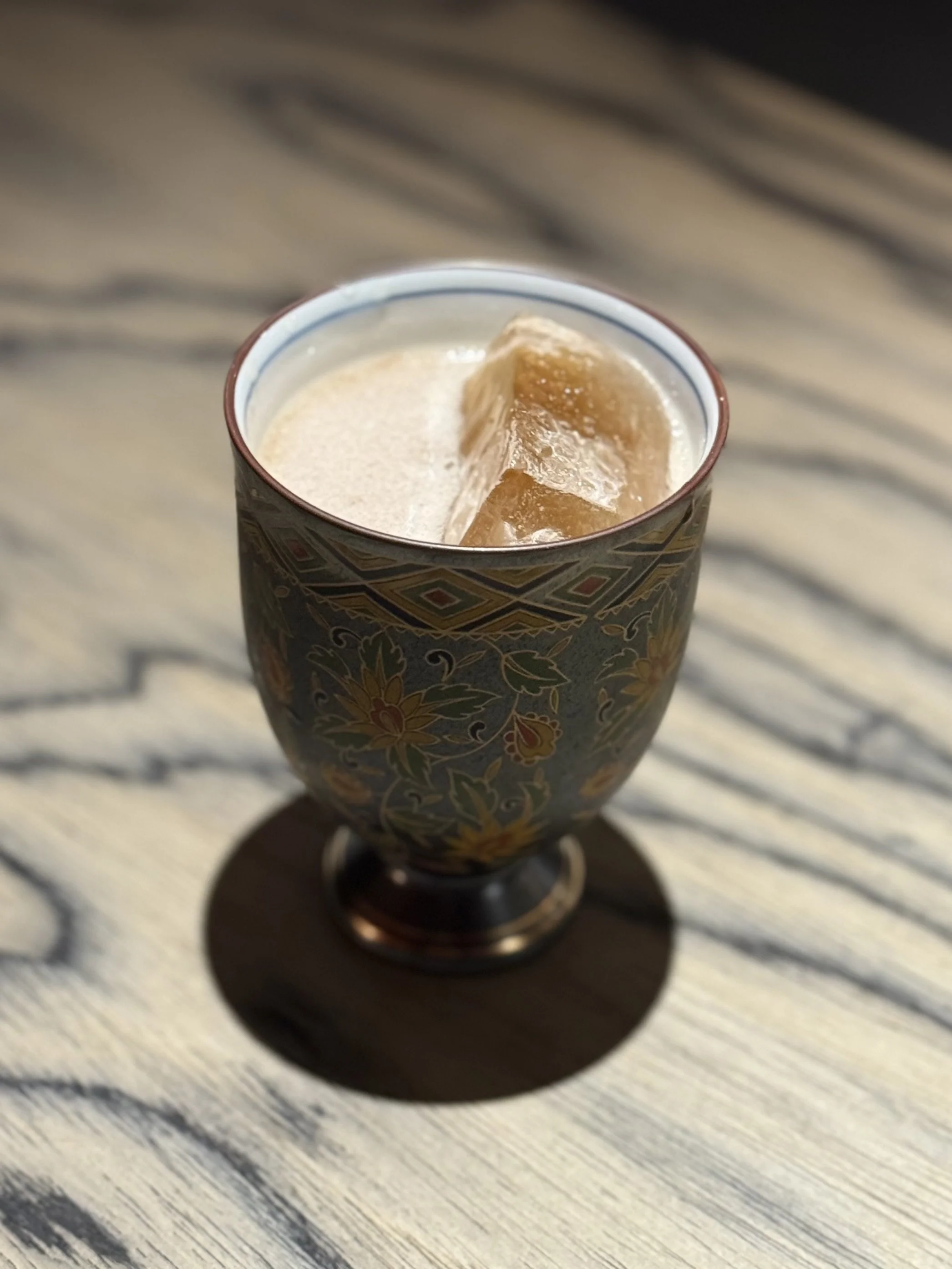 お寺の“香り”から着想を得た一杯は、お寺を思わせるサンダルウッドの香りをグラスに閉じ込め、京都を代表する「山崎」で作ったウィスキーサワー。ほのかに漂うウッディな香りとともに、古都の情景が立ちのぼる。
